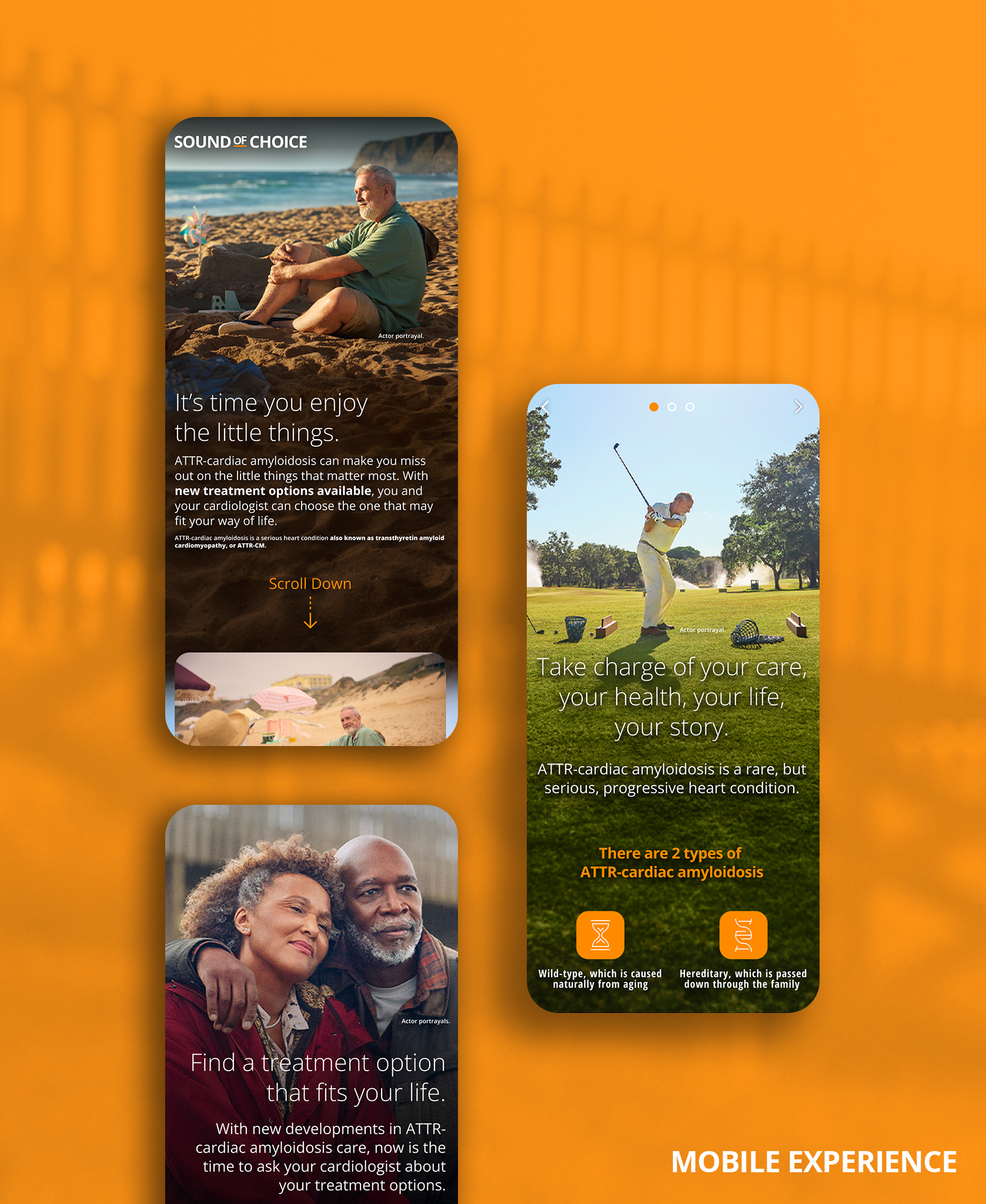 And finally, how could we break through using clichéd scenes? ATTR-CM patient research asserted that beach days, autumn walks, and golf trips were what patients missed the most. Like ATTR-CM, we had to look for a silver lining.